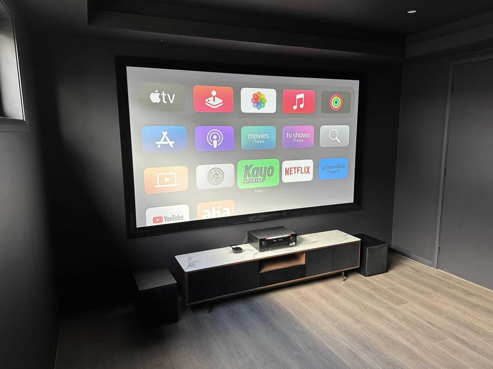 Central to this home theatre setup is the Epson TW7100 4K projector, renowned for its exceptional image clarity, high contrast ratios, and HDR support. Paired with a 120” Screen Pro Fixed acoustic projector screen, the combination ensures that every frame is projected with precision, vibrant colors, and deep blacks, making every viewing a mesmerising experience.