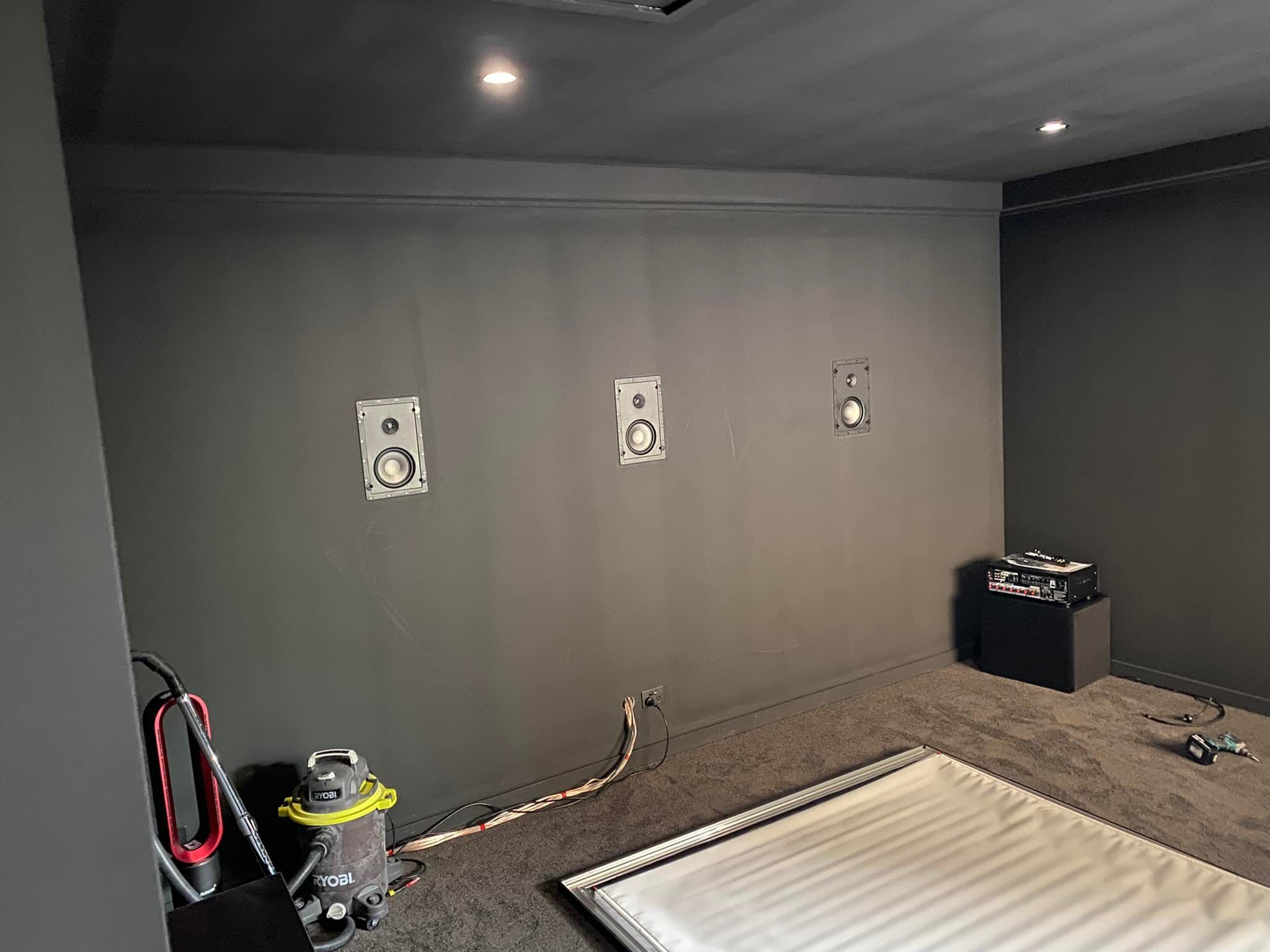 Hidden inwall speakers behind the projector screen creating an amazing cinematic experience