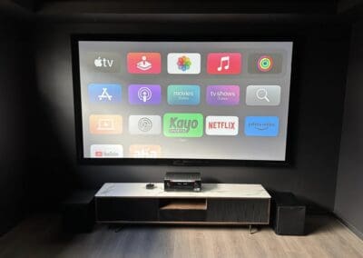 Connectivity and signal integrity are ensured by the use of 14 Gauge Terium speaker cabling and 8K Vanco HDMI cabling, guaranteeing that both audio and video signals are transmitted without loss or interference. Understanding that the best equipment requires expert tuning to perform at its peak, professional calibration was conducted upon installation. This process fine-tuned the audio and visual settings to match the room’s unique characteristics, ensuring optimal performance. To empower our clients, comprehensive customer training was provided, covering the operation of the home theatre system, maintenance tips, and best practices to maximise their enjoyment and the longevity of the system.